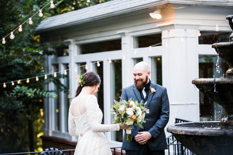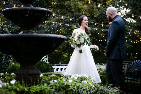 They chose to have their first look at the fountain in the back of the historic home.